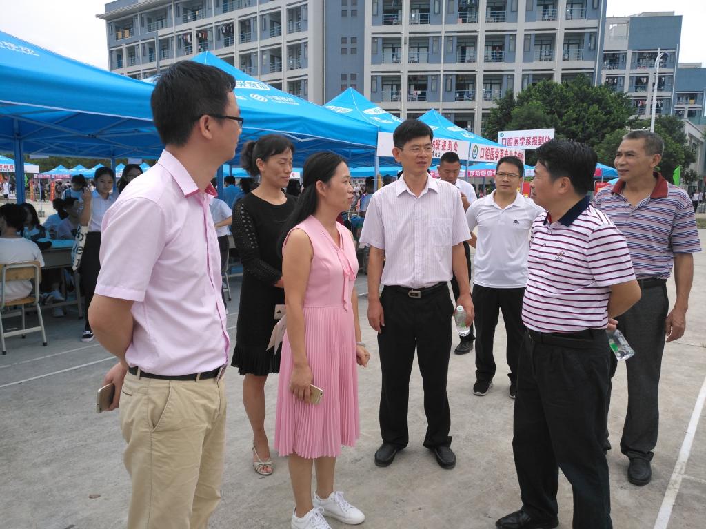 在硕果累累的金秋时节,伴着纤云翩翩,伴着枫红菊香,2018级新生们怀揣着无限的憧憬,来到了肇庆医学高等专科学校。他们的到来,犹如徐徐清风,让学校更加清新宜人,璀璨多姿。为了更好的配合学校做好迎接2018级新生的工作,2018年9月8日至9日连续两天护理系在鼎湖及端州两个校区有序地开展了一系列迎新工作。学校董事长李力强、党委副书记陈彤、副董事长张明、李小兰处长、覃瑜林处长、廖明生书记、陈晓霞主任以及黄文专副书记莅临迎新现场指导工作,校领导的高度重视为迎新的顺利进行奠定了厚实的基础。